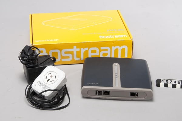 Bostream startade som Lco Bonet av Riksbyggen 1998 och erbjöd i samarbete med Telia från 2000 bredbandstjänster till privatpersoner, företag, fastighetsägare och bostadsrättsföreningar. Riksbyggen sålde bolaget till ett brittiskt fondbolag april 2001 och det bytte namn till Bostream. I samband med detta lanserade man en symbol med en överkorsad snigel. ADSL-bredband kunde 2003 erbjuda upp till 26 MB/s, priskrig och tillgänglig nätkapacitet medförde att abonnemang som såldes kunde ha från 0,25 MB/s och kosta ca 200 kr/månad. Bostream köptes upp av Bredbandsbolaget i augusti 2004 och hade då 104000 abonnenter. Sammantaget blev då Bredbandsbolaget med 27% av abonnenterna den andra största bredbandsleverantören efter Telia med 33%. Bredbandsbolaget dominerade i storstad. Per-Olov Bjällhag skaffade routern i december 2004, den levererades till Videofönstret, en videobutik i Tyresö Centrum nära Per-Olovs bostad.